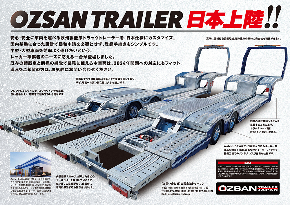 Ozsan Trailer Japan(オズサントレーラージャパン)はトルコOzsan Trailer社の正規日本総代理店としてヨーロッパ市場で定評のあるOzsan Trailer社の製品を日本市場向けに共同開発、改良し販売を行っております。